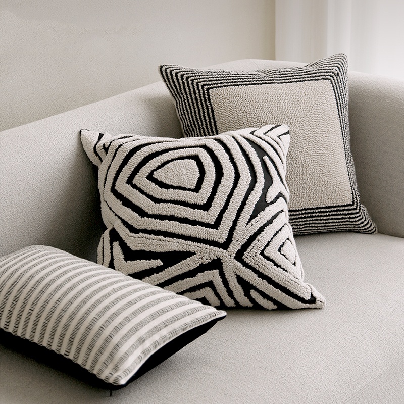 Color classification: black and white three-dimensional towel embroidery square pillow, black and white stripes towel embroidery square pillow, White Stripes texture square pillow, White Stripes texture waist pillow, black and white stripes texture square pillow, black and white stripes texture waist pillow