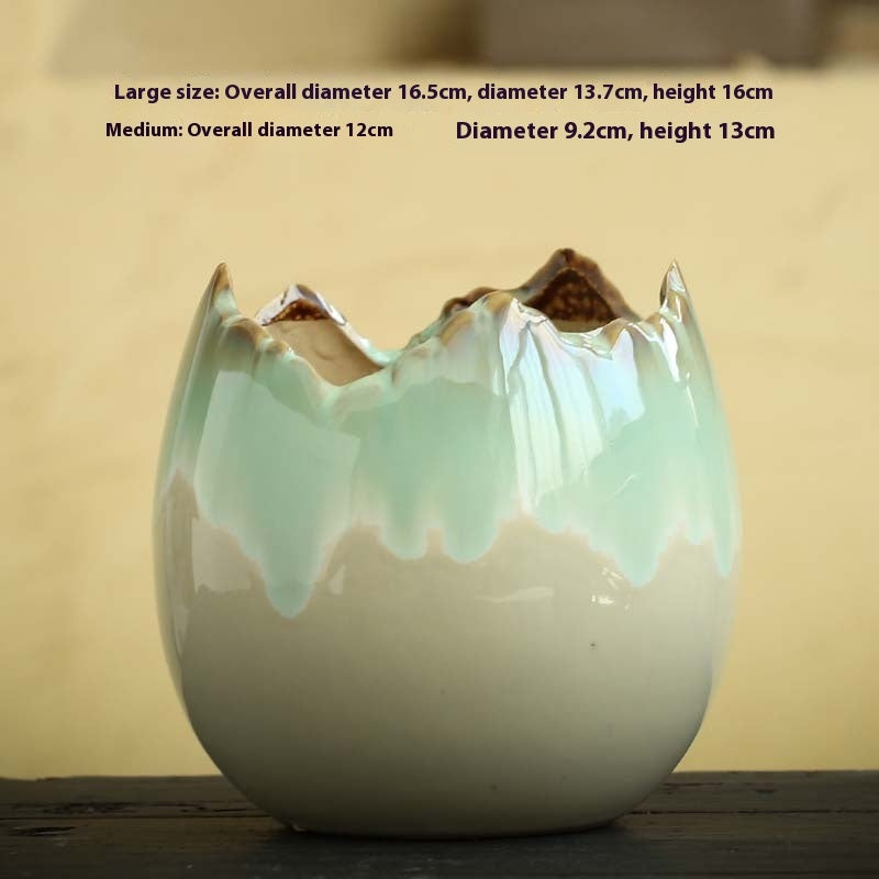 Color: XYD notch egg shell pots-White, XYD notch egg shell pots-black, XYD notch egg shell pots-blue, XYD notch egg shell pots-Brown, XYD notch egg shell pots-green flow glaze, XYD gap egg shell pots-gradient flow glaze, XYD gap egg shell pots-gradient flow glaze [with base], XYD gap egg shell pots-Brown [with base]], XYD gap egg shell pots-green glaze [with base], XYD gap egg shell pots-white [with base], XYD gap egg shell pots-black [with base]], XYD gap egg shell Basin-blue [with base]]
